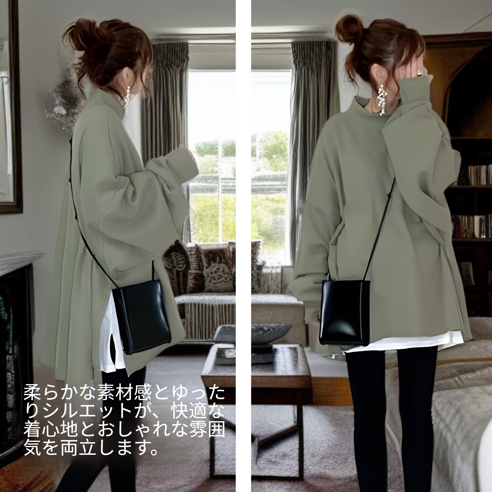 ● 柔らかな素材感とゆったりシルエットが、快適な着心地とおしゃれな雰囲気を両立します。