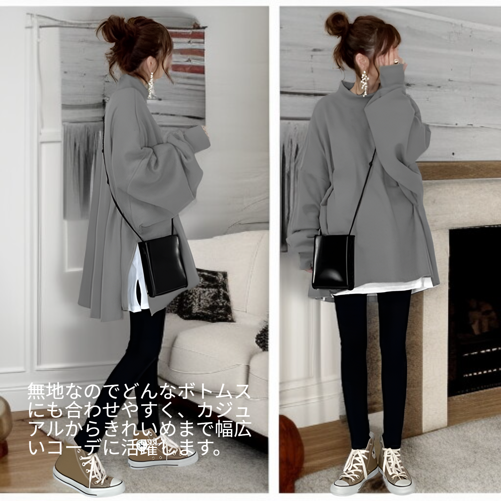 ● 無地なのでどんなボトムスにも合わせやすく、カジュアルからきれいめまで幅広いコーデに活躍します。