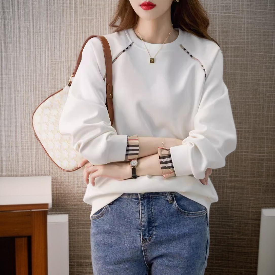 2025年春/秋 薄手 ピュアコットン スウェットシャツ レディース 韓国風 フードなし ゆったり プルオーバー 長袖 ラウンドネック フェイクツーピーストップ