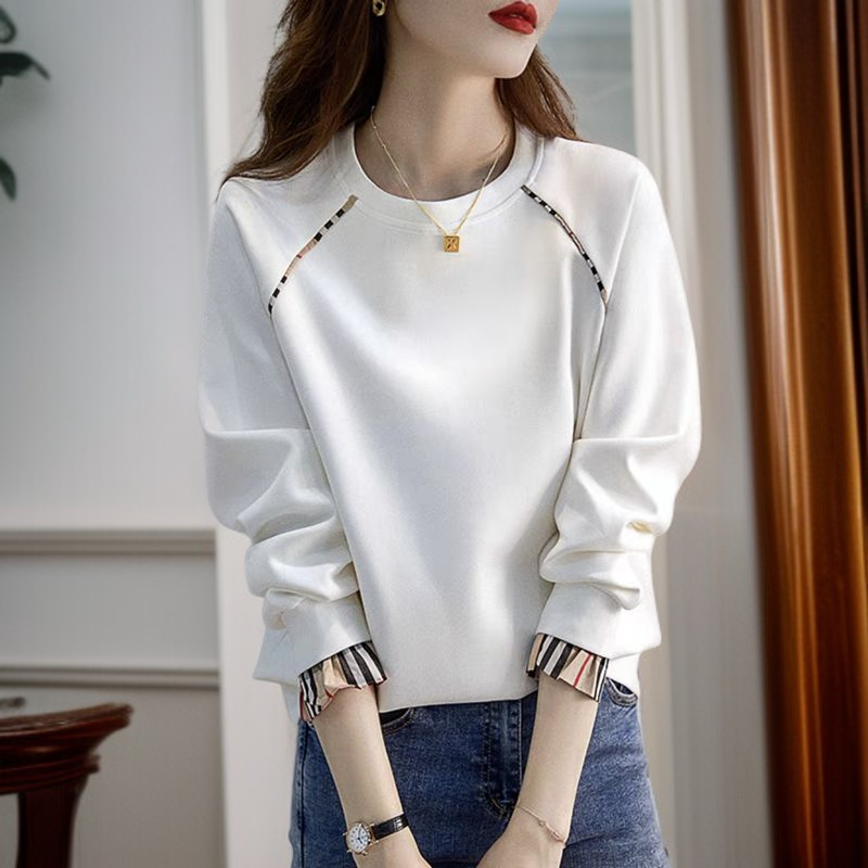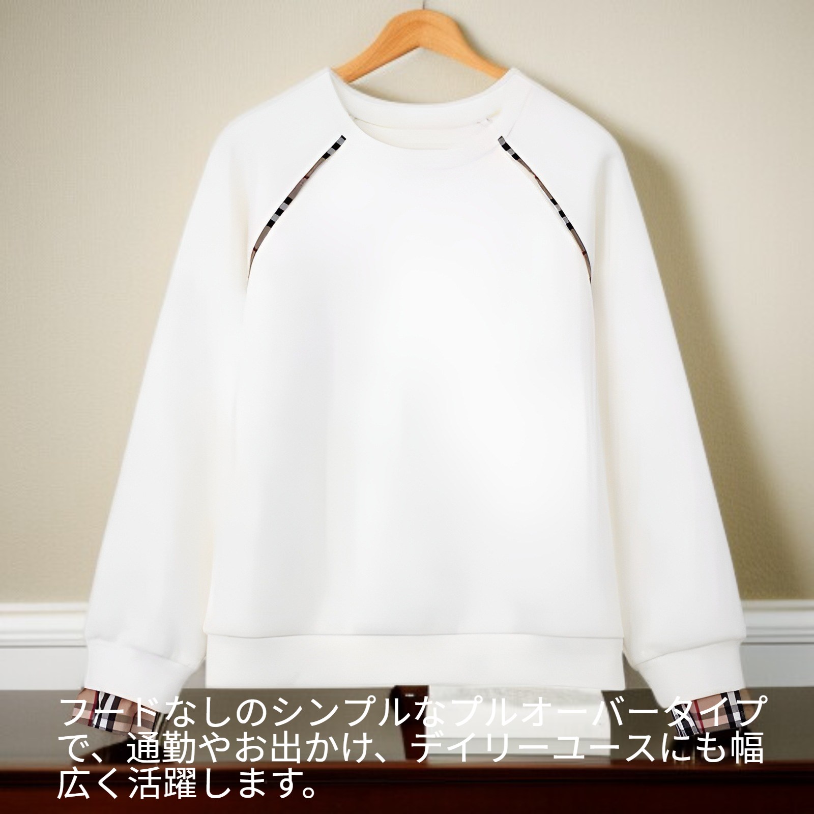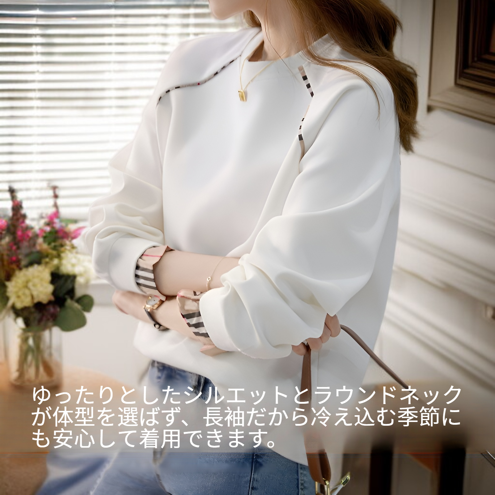 ● ゆったりとしたシルエットとラウンドネックが体型を選ばず、長袖だから冷え込む季節にも安心して着用できます。